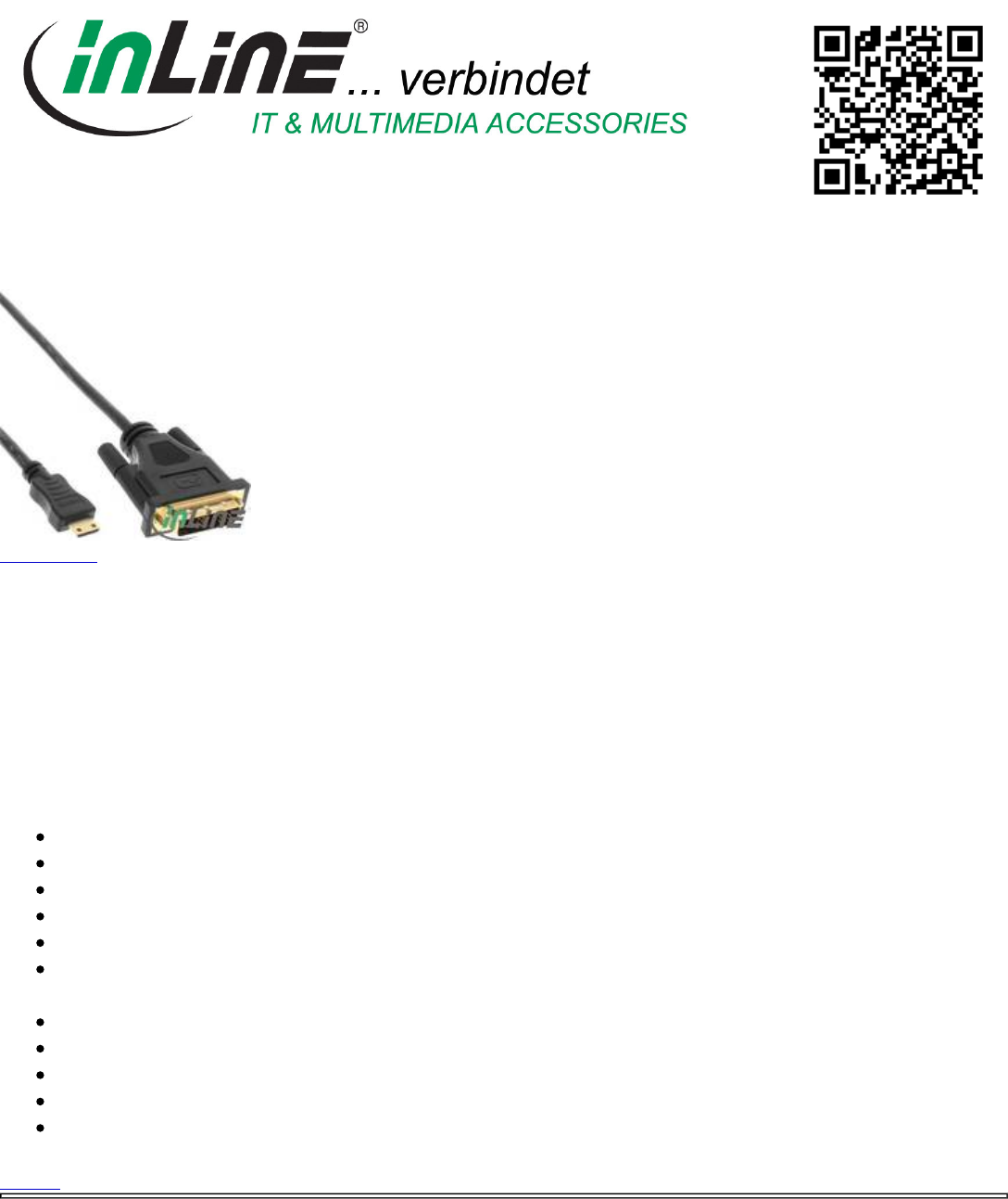 InLine® Mini-HDMI to DVI cable, HDMI C male to DVI 18+1 male,