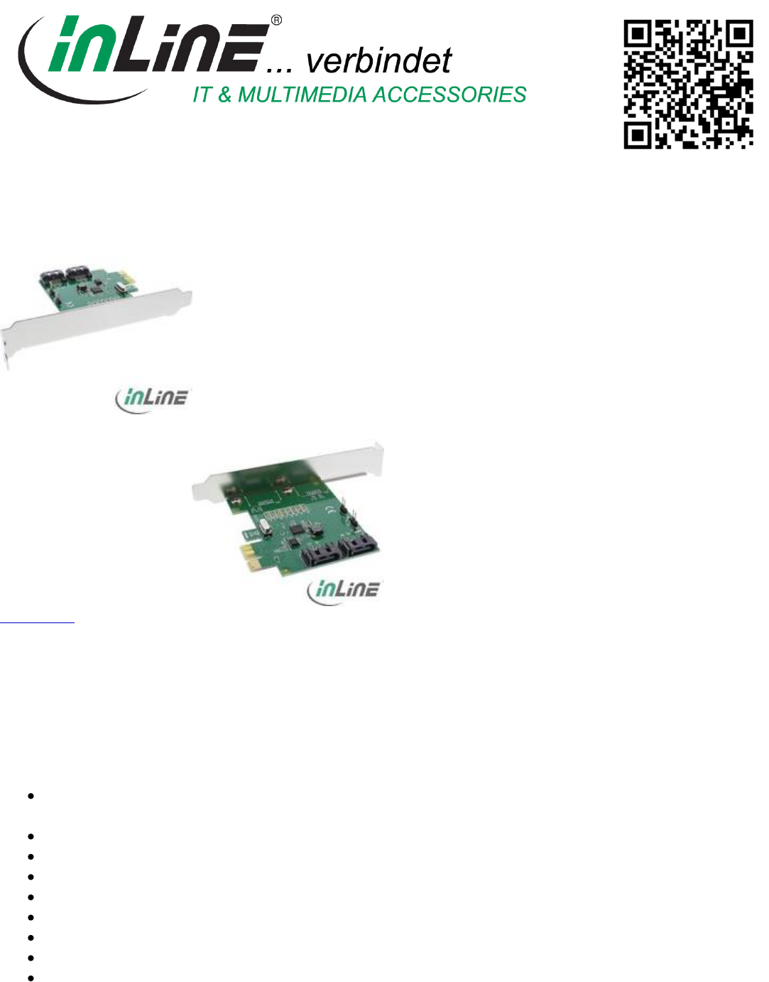 Inline® Interface card, SATA 6Gb/s controller card 2-channel, x1