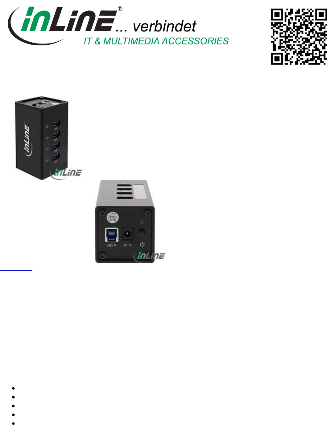 InLine ® USB 3.0 aluminum hub 4 port black, 2.5 A Power Supply Active USB 3.0 aluminum hub with VIA