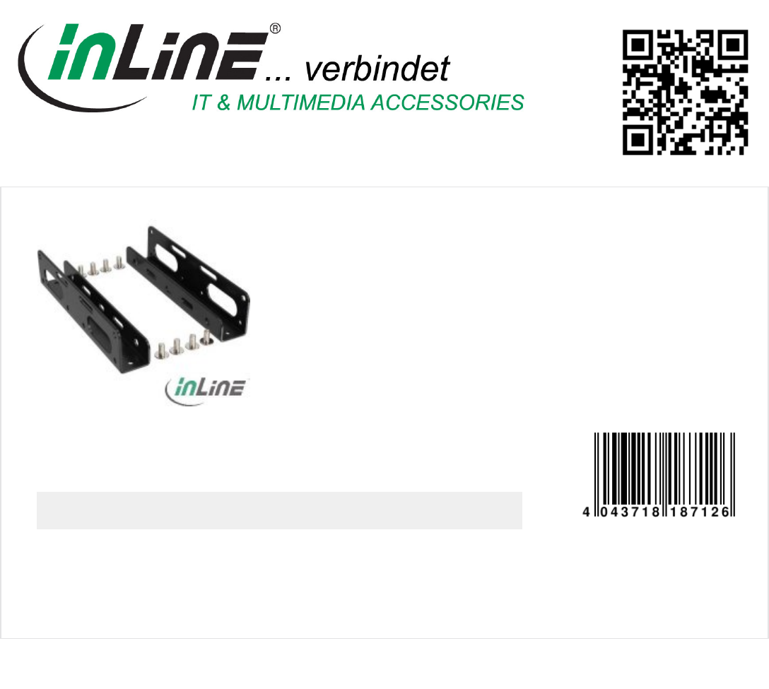 InLine® 2,5" HDD/SSD to 3,5" HDD size bracket kit, only bracket and screws, black