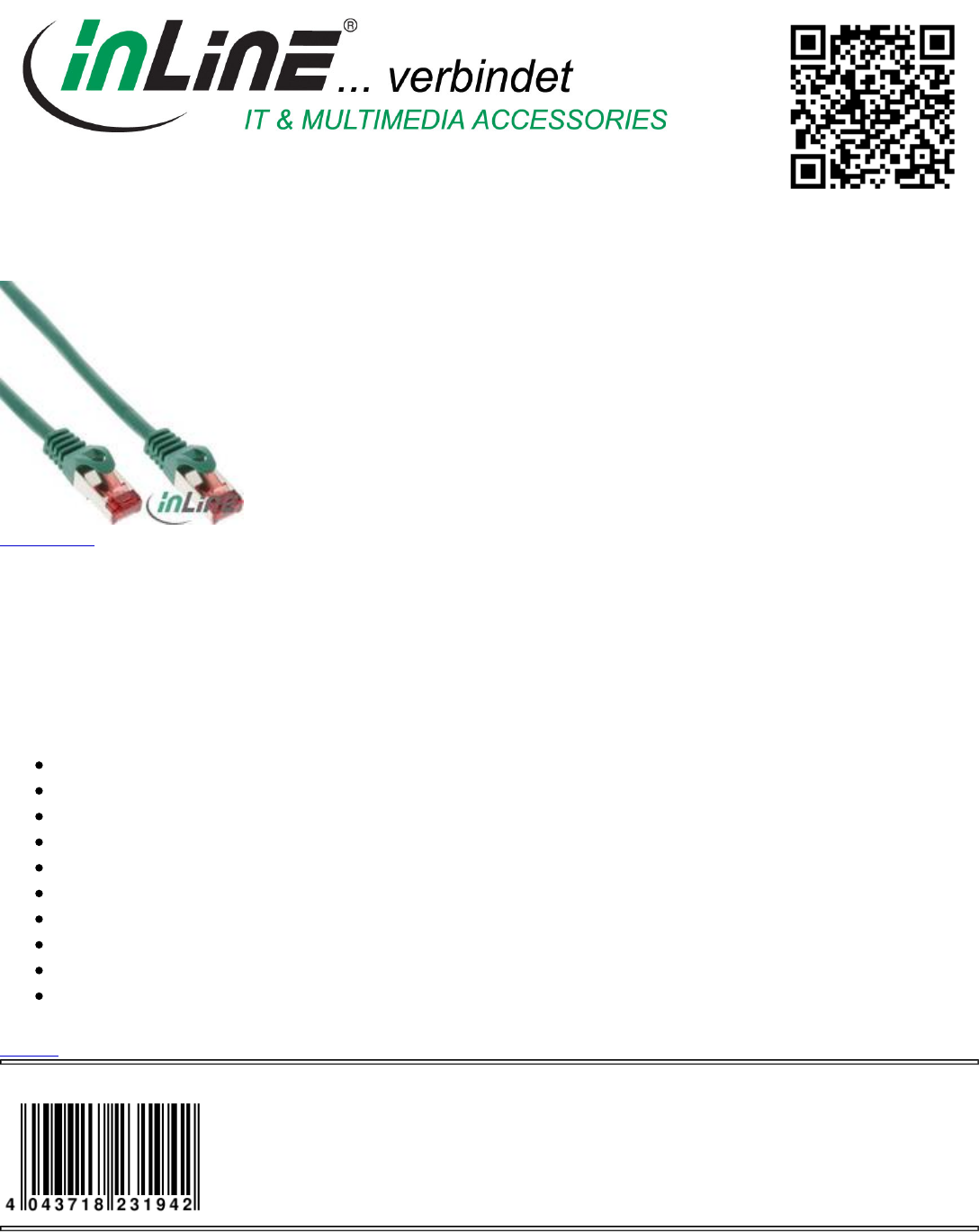 Category: Cable, Patch Cable Cat.6, Cat.6 S/FTP (Pimf)