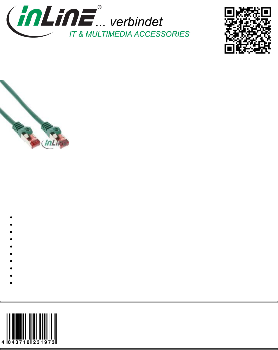 Przeglądaj online lub pobierz Arkusz Danych dla Kable sieciowe InLine 76133G. InLine 76133G networking cable Instrukcja obsługi