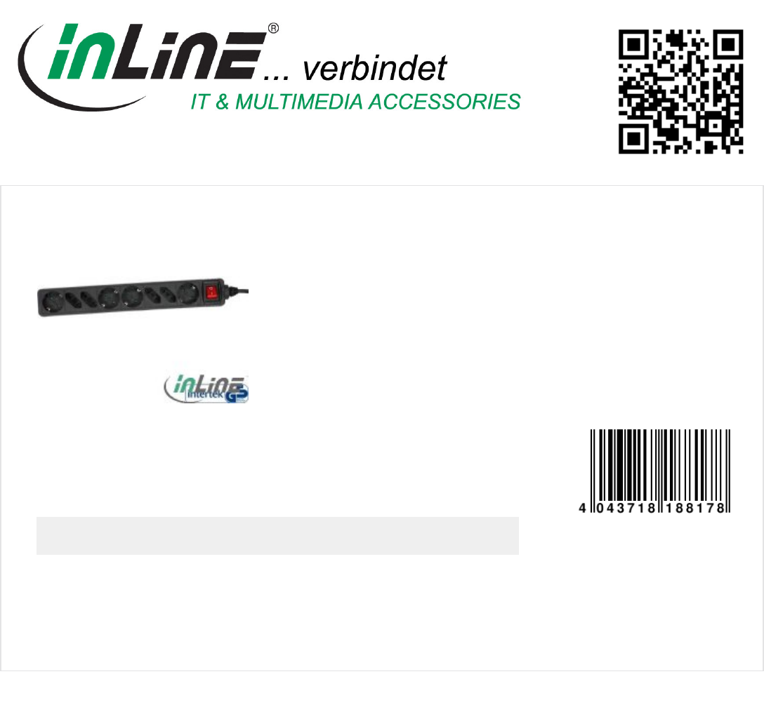 InLine® power strip, black, 8-fold, 4xSchutzkontakt + 4xEuro, 1,5m supply cable,with on/off