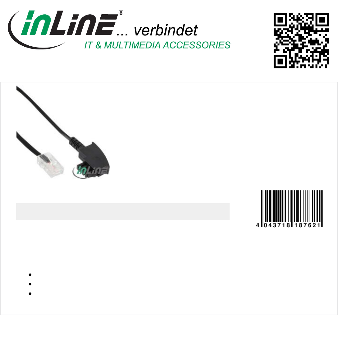 Pin assignment (TAE -> RJ45): 1-4, 2-5