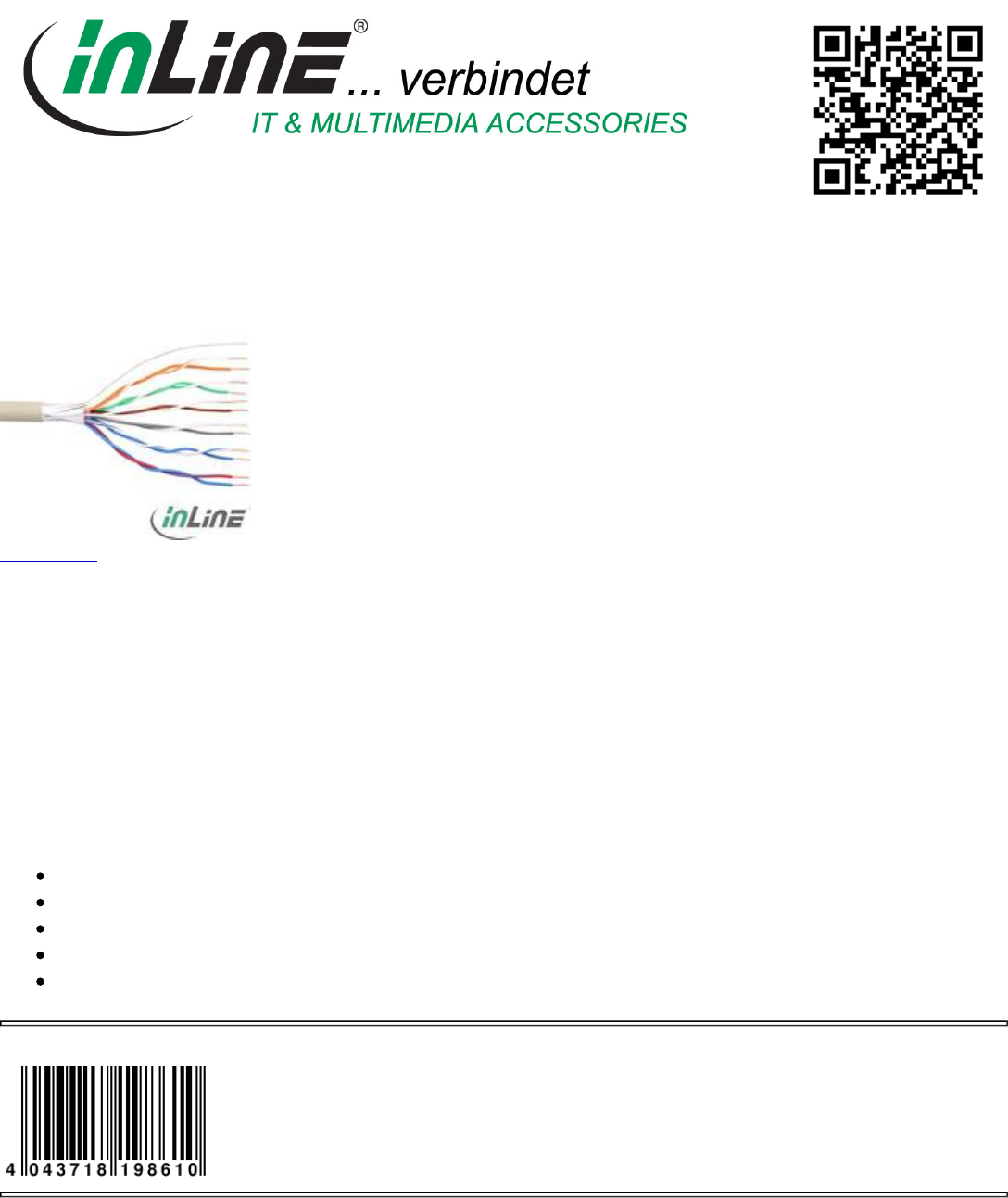 InLine® Telephone cable 12-wire, solid, 6x2x0.6mm, shielded, 100m